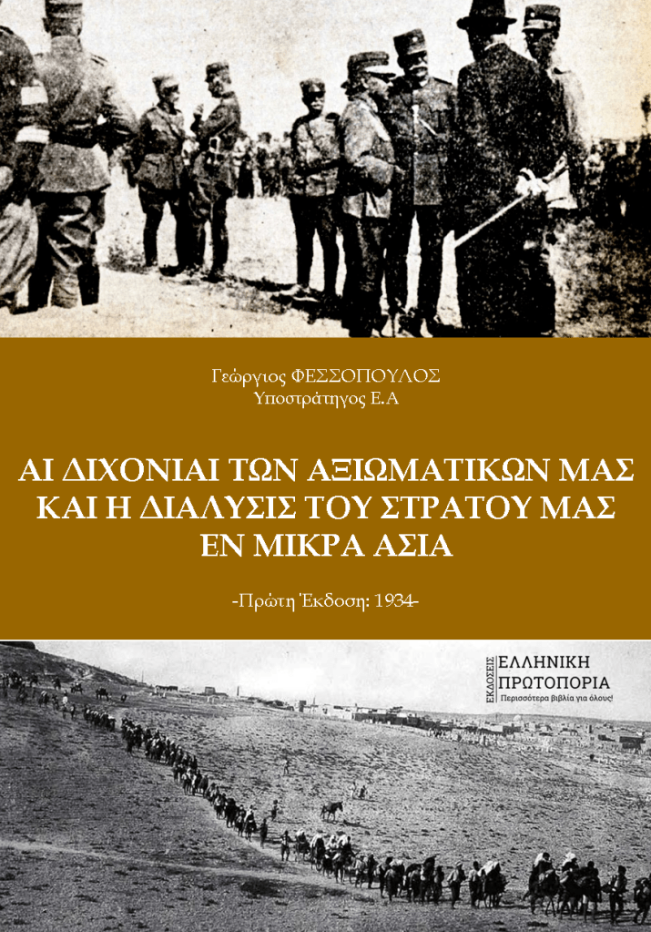 Αι διχόνιαι των Αξιωματικών μας και η διάλυσις του Στρατού μας εν Μικρά Ασία. Γεώργιος Φεσσόπουλος, Υποστράτηγος Ε.Α. Πρώτη Έκδοση: 1934. Εκδόσεις Ελληνική Πρωτοπορία, 2018. Σελ. 208. ISBN: 978-618-5383-03-9