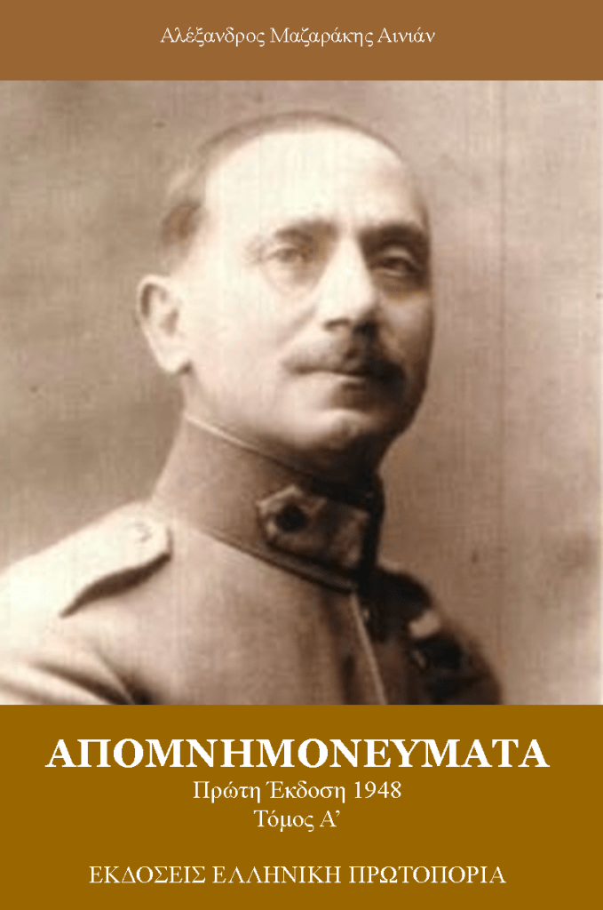 Αλέξανδρος Μαζαράκης Αινιάν | Απομνημονεύματα, Τόμος Α’. Πρώτη Έκδοση 1948. Εκδόσεις Ελληνική Πρωτοπορία, 2019. Σελ. 390. ISBN: 978-618-5383-23-7