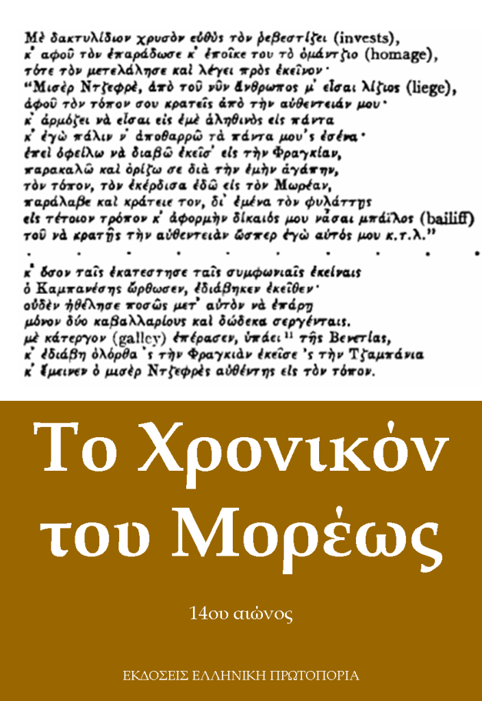 Το Χρονικόν του Μορέως. 14ος αιώνας. Εκδόσεις Ελληνική Πρωτοπορία, 2018. ISBN: 978-618-5383-13-8. Σελ. 460